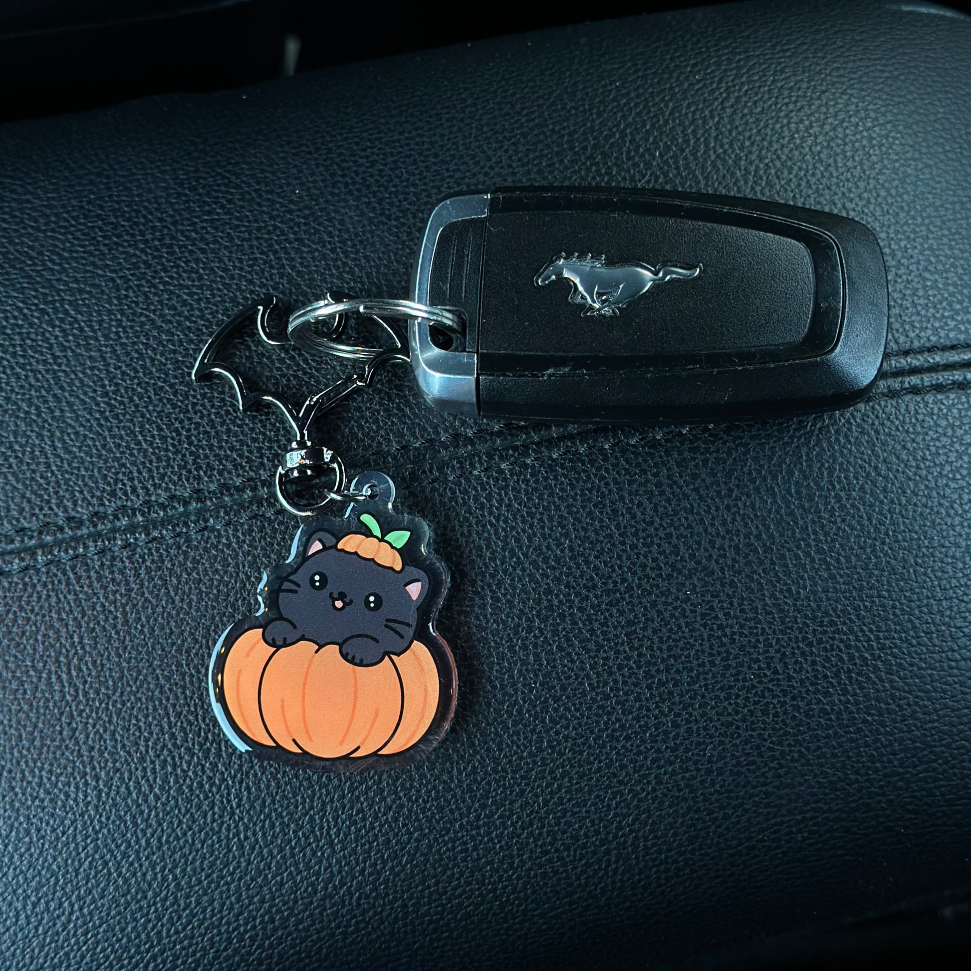 Pumpkin Kitty Keychain- Part of our Limited Edition Halloween Collection🦇